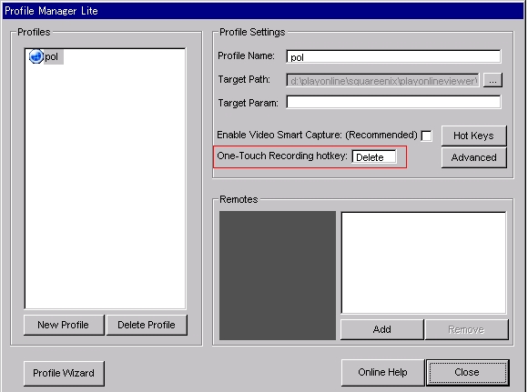Profile Manager LiteのOne-Touch Recording hotkeyに、