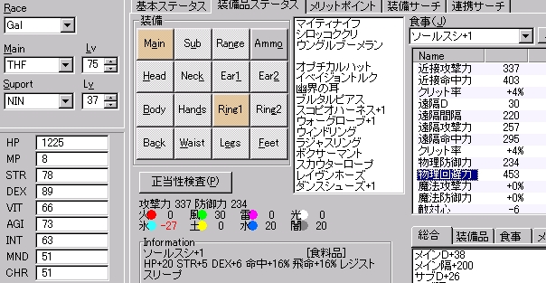 風曜日シーフだったら、ある程度装備に余裕を持たせることが可能な数値。