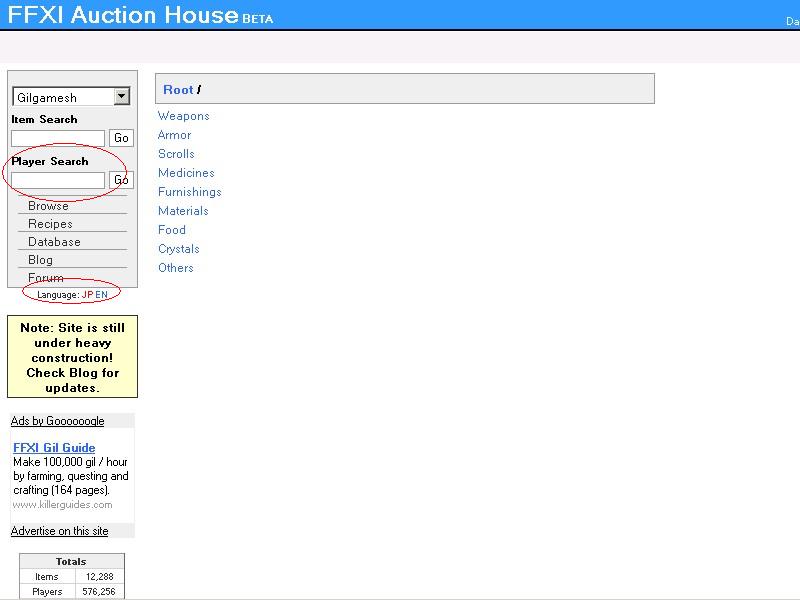 FF11の競売データサイト、英語だけどお勧め(一部日本語化)